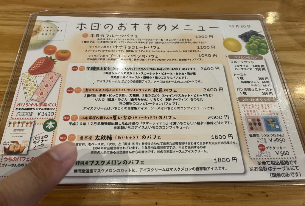 メニューには「苦手なフルーツがあったら申し付けください」と書いてありました。太秋柿のパフェを注文しておいて、「柿が苦手です」って言ったら、お店の方に「ふざけるな!」と言われるでしょうね(^^;)
