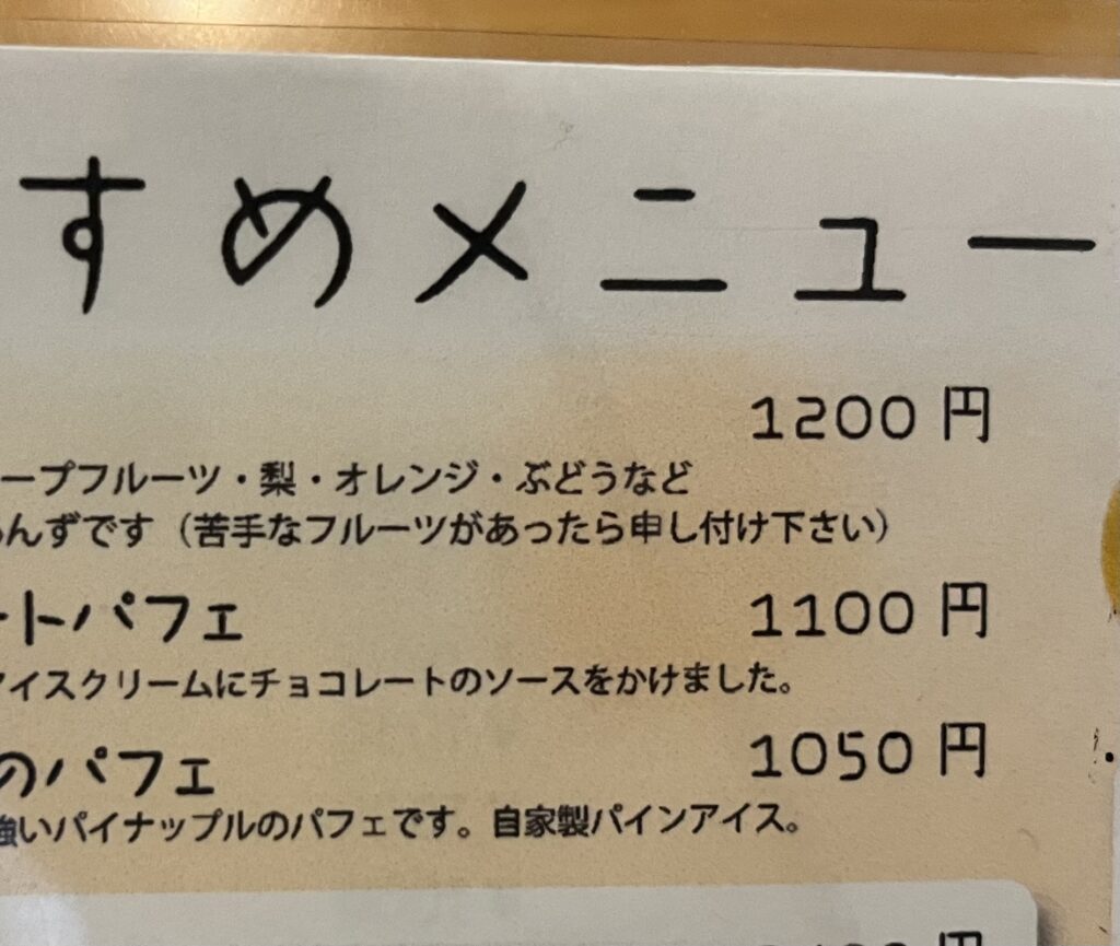 完食しました。初めて来たお店でしたが、苦手な柿でも完食できたのは、このお店だったからかな、と思いました。店員の方もとても感じが良く、また来て、今度は他のフルーツのパフェを食べたいと思います。