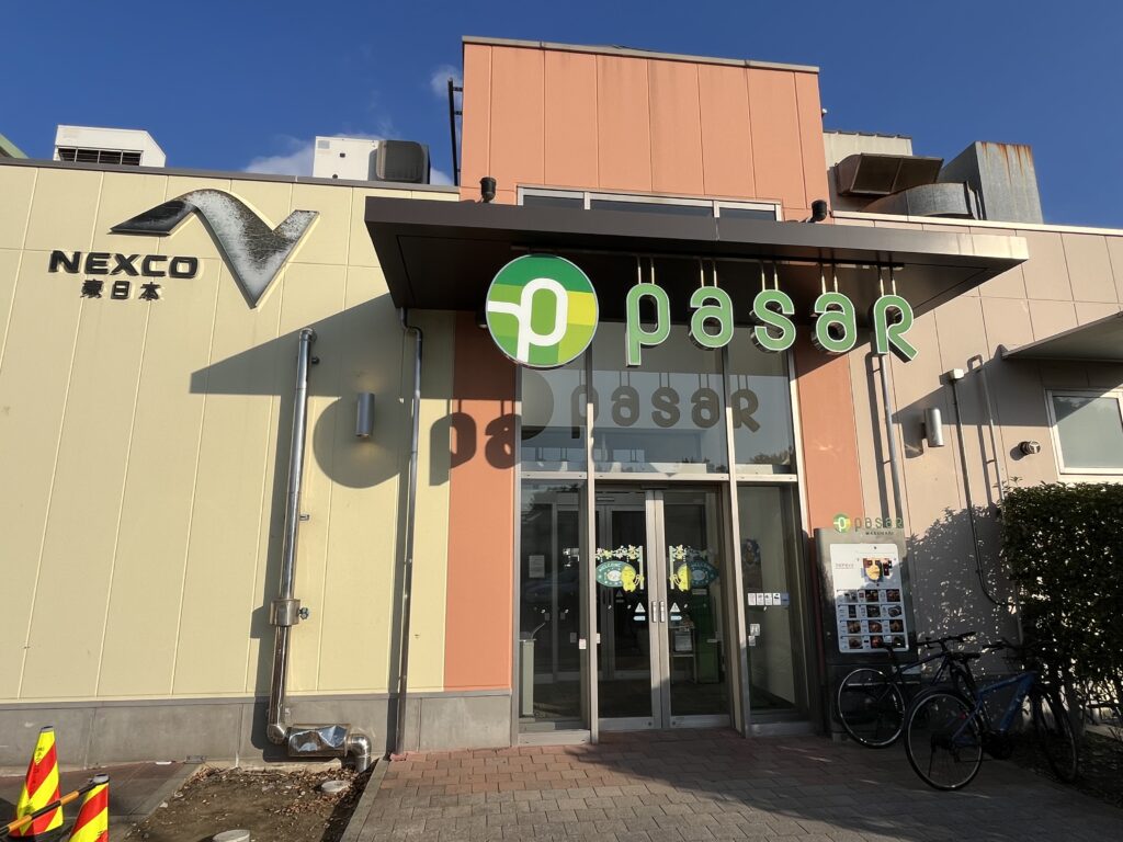 一般道側の「パサール幕張」上り線の入り口です。NEXCO東日本のマークは色褪せて白黒化していました。