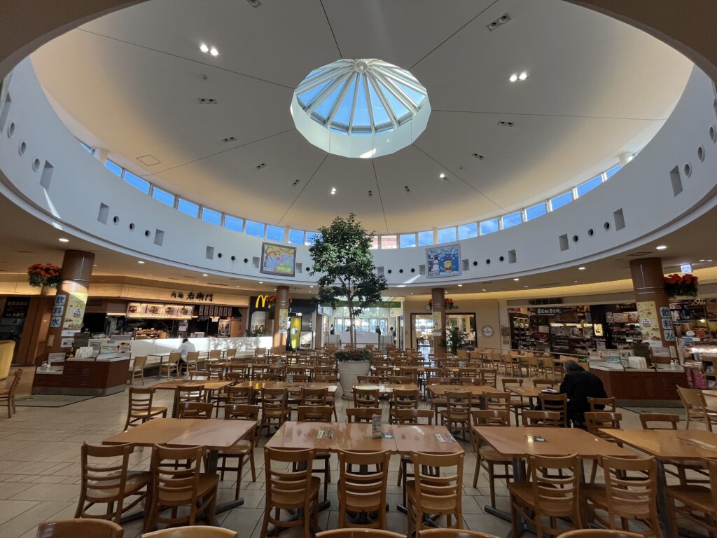 プラネタリウムのような、カッコいい屋根のフードコートがありました。土曜日の朝8時ごろですが、お客さんはほとんどいらっしゃらなかったです。