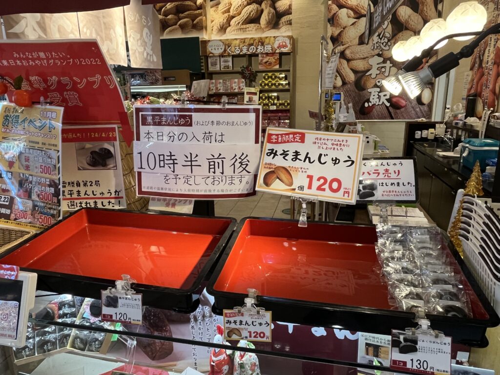 こちらは、お土産コーナー内にある「黒平まんじゅう本舗」のブースです。「ロケットニュース24」のライターの方が召し上がっていたお土産準グランプリに輝いた黒平まんじゅうを食べたいな、と思いました。