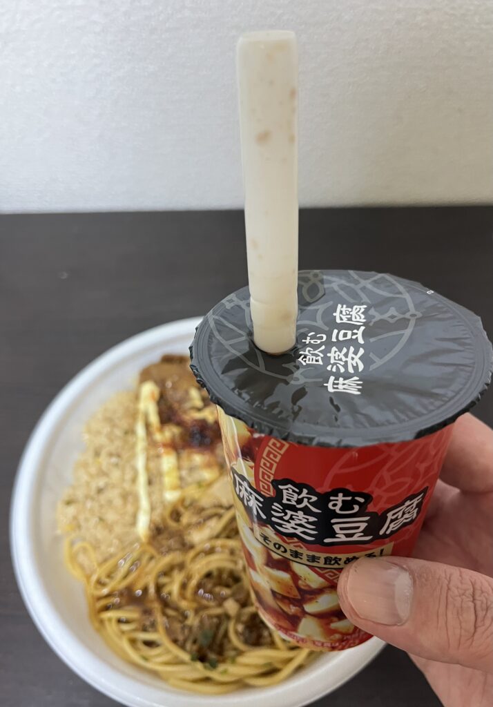 『飲む麻婆豆腐』には、タピオカドリンクみたいな太いストローがついていました。