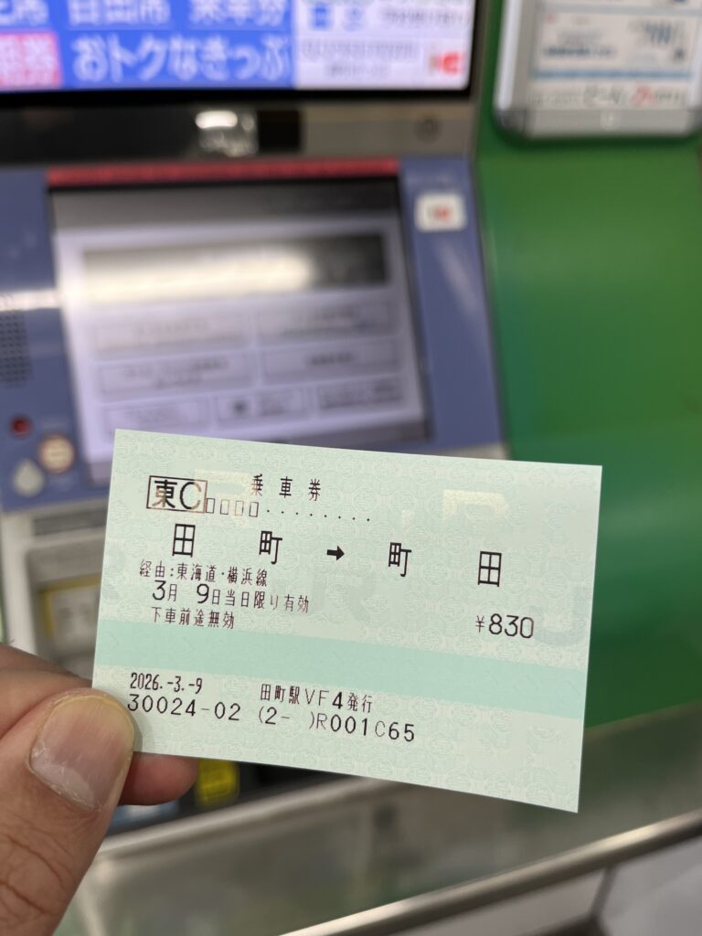 そんなわけで、JR線のみのルートを選択して、「田町→町田」の回文切符を購入です\(^o^)/